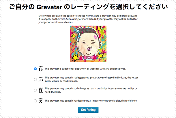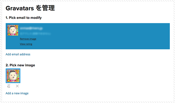 著作者ユーザーアイコンの登録には、Gravatarという外部サービスを使います。